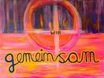 Im Jahr 2017, ich hatte über Jahre mehr als 40 Bilder zur «Dreigliederung» auf Leinwände gemalt, mit der Idee Ausstellungen zu machen, mit etlichen Texten versehen, um darüber mit unterschiedlichsten Menschen ins Gespräch zu kommen. Dazu gaben wir einen Katalog (Anmerkung 4) mit Bildern und Texten zur «Dreigliederung eines sozialen Organismus» heraus, der erste Grundlagen vermitteln sollte; auf künstlerische Art.